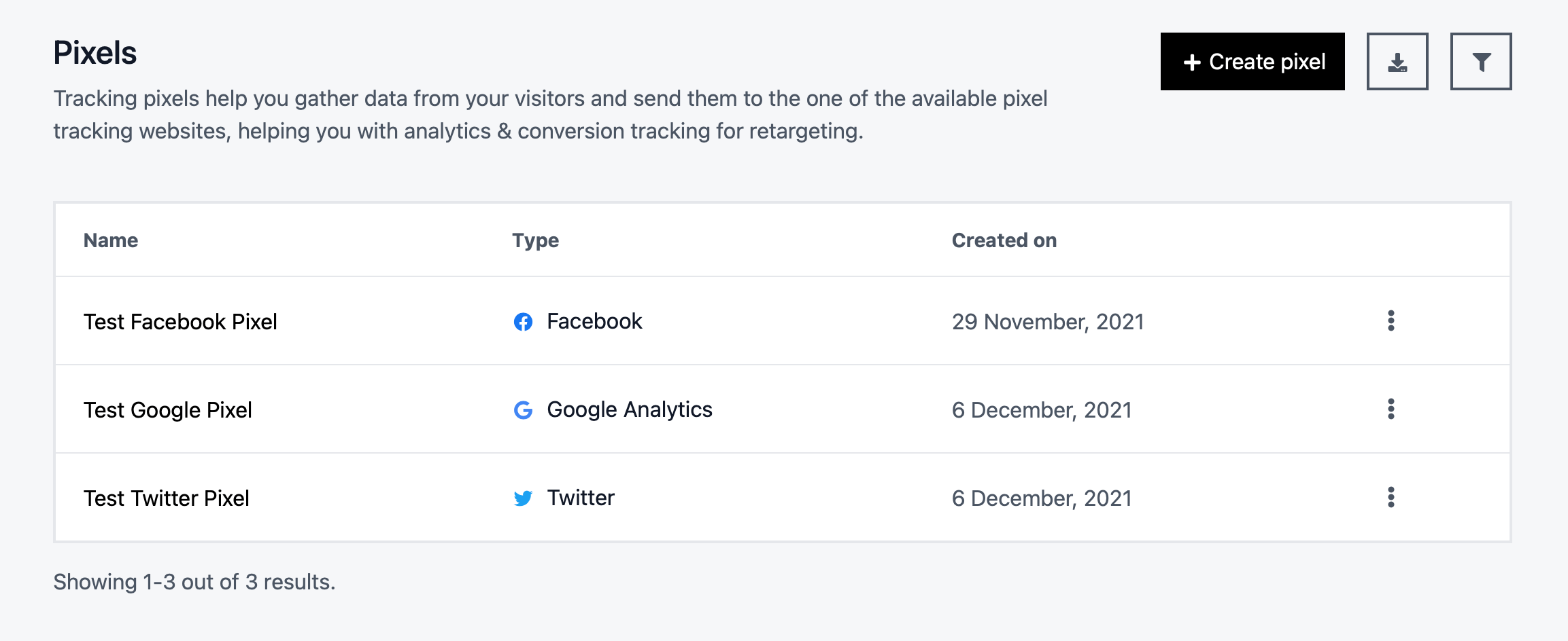 Facebook, Google Analytics, Google Tag Manager, LinkedIn, Pinterest, Twitter, Quora, TikTok, Snapchat tracking pixels available.