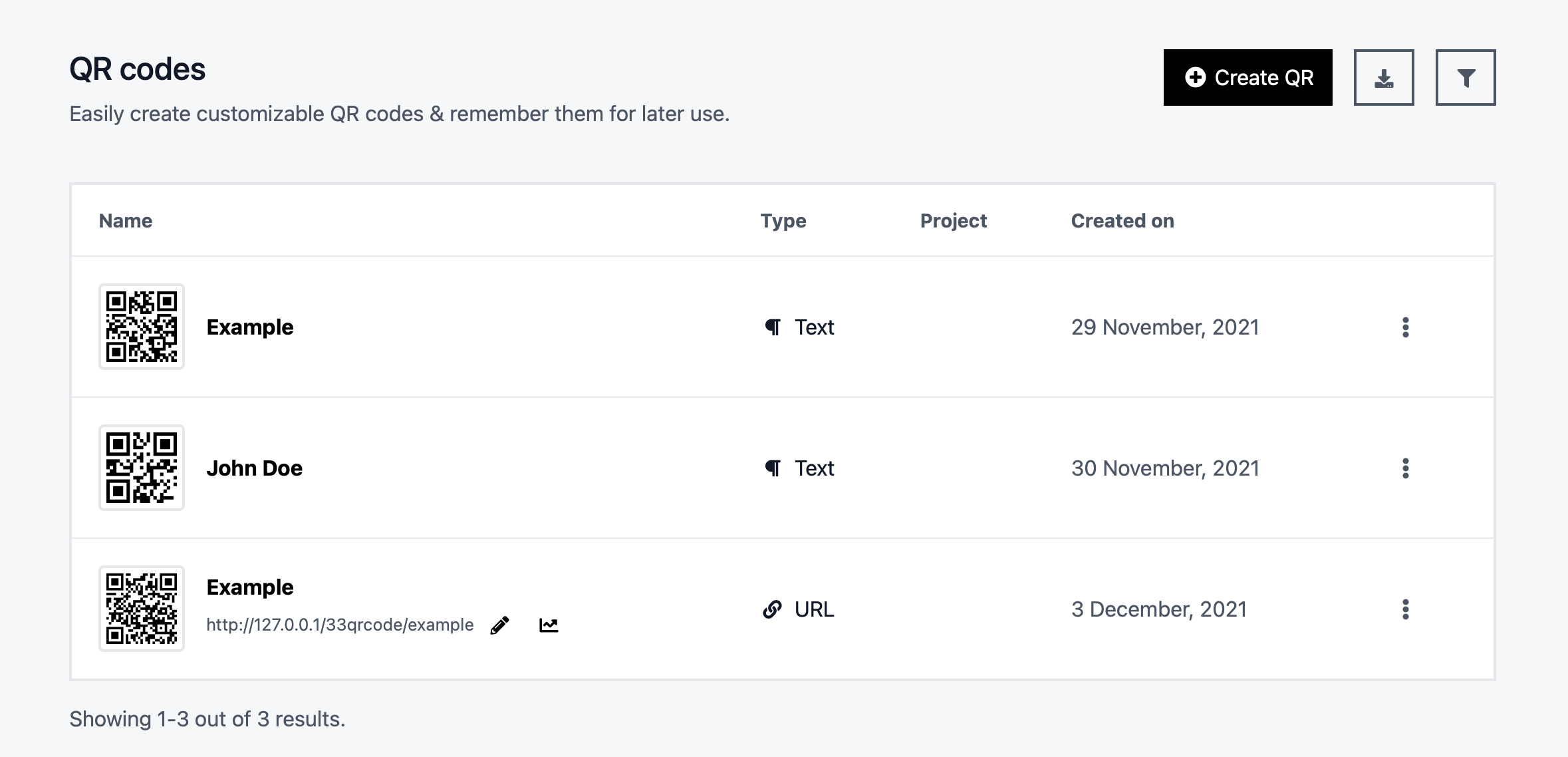 Static QR codes are fixed, meaning that all the data is directly embedded into the QR code. Once generated and printed for real-world usage, it can't be changed.